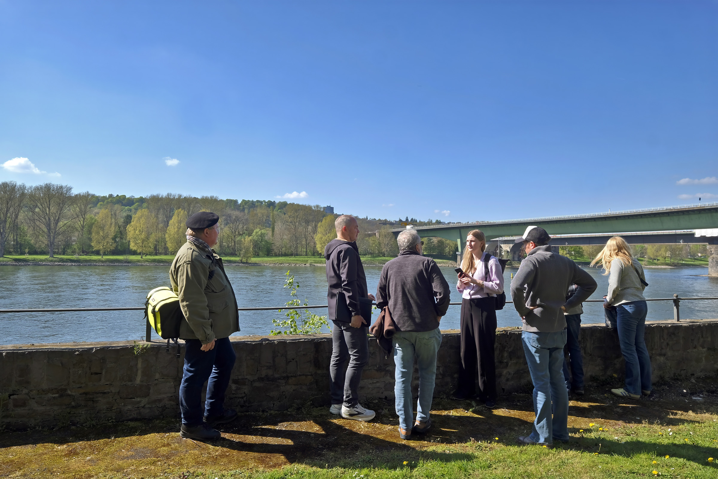 Auch das ehemalige Teehaus im Park, später als „Lutherkapelle“ genutzt, sowie die eindrucksvolle Mendelssohn-Allee mit ihren alten Linden vermittelten den Teilnehmenden ein anschauliches Bild der historischen Parkanlage. Der Weg führte weiter entlang des Rheinufers und durch die Unterführung zurück in den Ort – eine Strecke, die künftig Besucher ganz bewusst durch unterschiedliche Zeitschichten Horchheims führen soll.