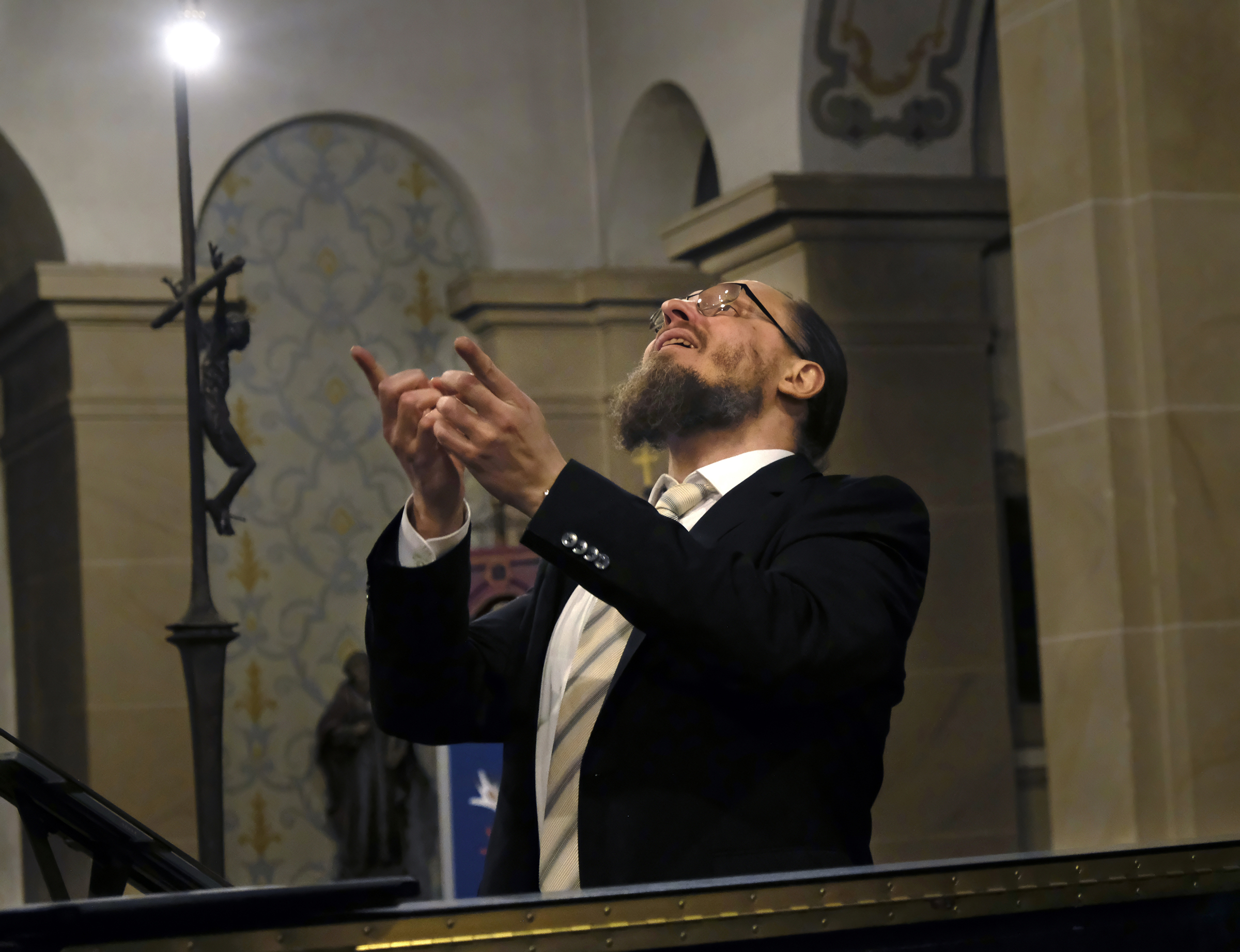 Einleitend mit Rudolf Deschs kräftiger „Trösterin Musik“ und Ludwig van Beethovens entsprechendem „Die Himmel rühmen“ konnte das Publikum das dazwischen eingeschobene „Gnädig und barmherzig“ von August Eduard Grell (1800-1896) mit seiner ruhigen und klaren A-capella-Stimmführung voll genießen. Die Solopartie darin sang Andreas Höhler mit seinem ihm eigenen warmen und vollen Bariton.